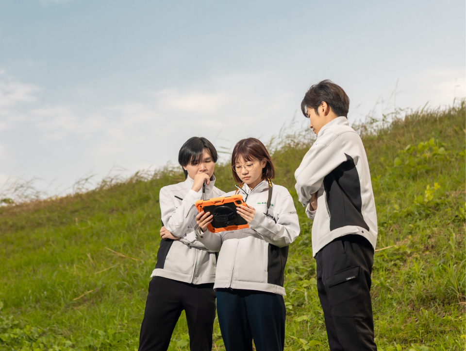 道路や水道など、暮らしに欠かせない環境を整えることは、地域の未来をつくる大切な仕事です。私たちは人とのつながりを大切にし、社員一人ひとりが力を合わせ、これからも安全で住みよいまちづくりに貢献していきます。